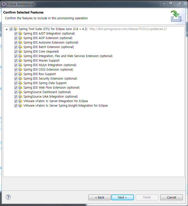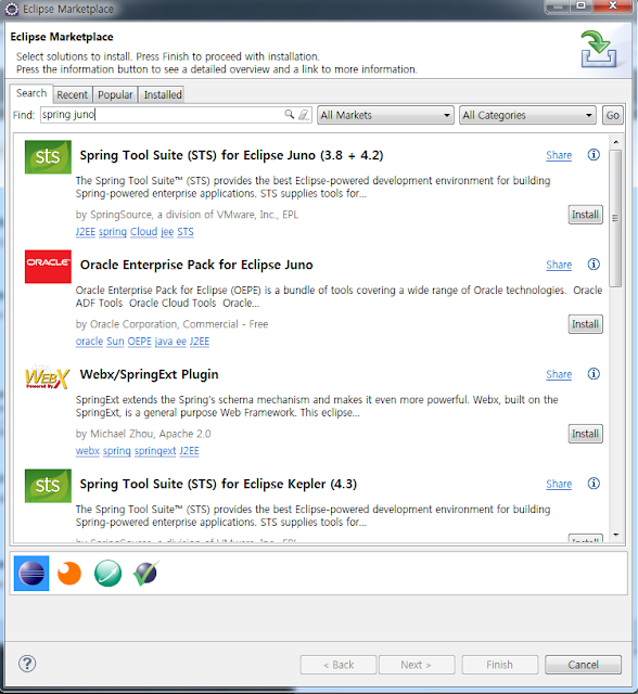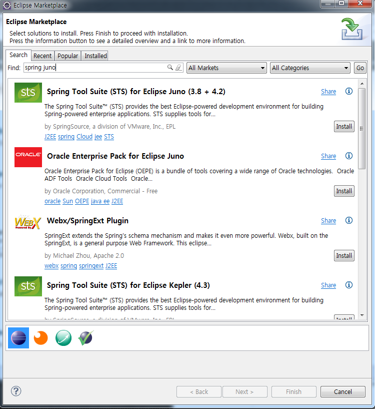 이러한 창이 뜨고 Find 에 'spring juno' 를 치면 위 그림과같은 검색결과가 나타난다.