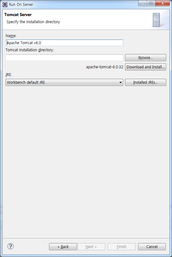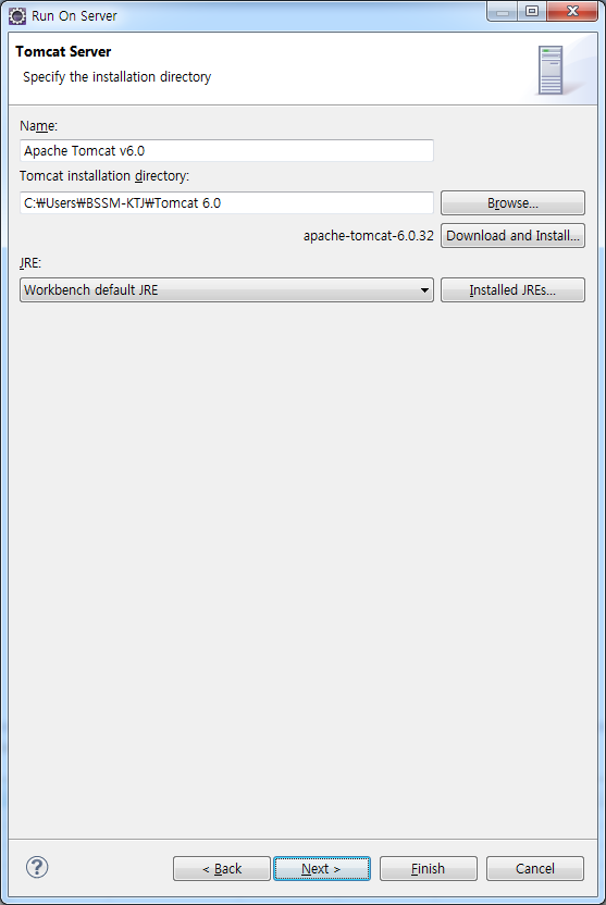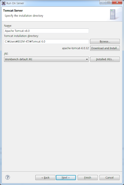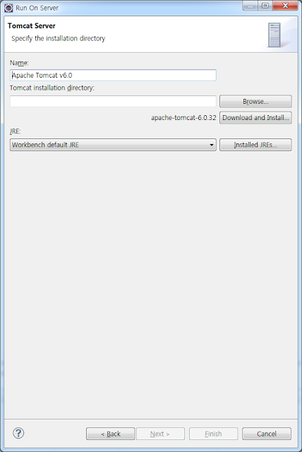 원하는 경로 하나 잡아주시고.. 왠만하면 'Tomcat 6.0' 이라고 새폴더 하나 만드셔서 관리하세요~~ 그리고 만약 경로 설정했는데