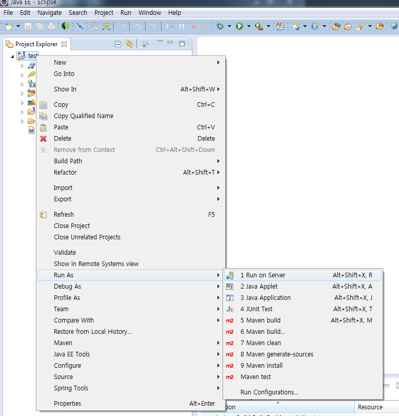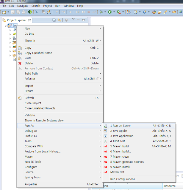 프로젝트를 우클릭후 Run As -> Run on Server 클릭!